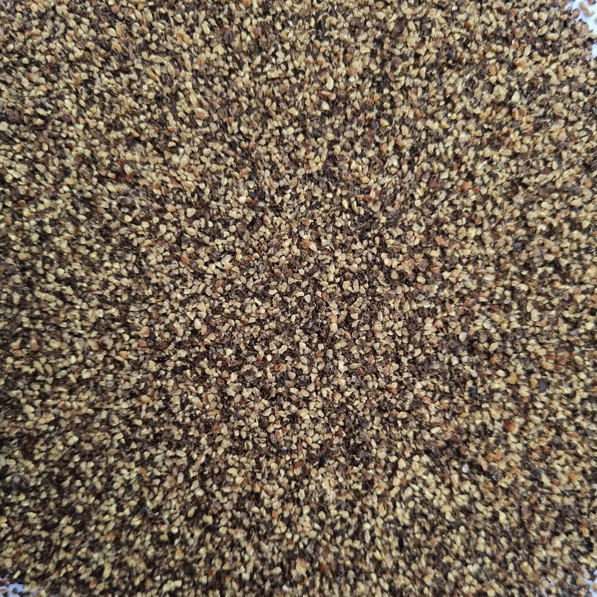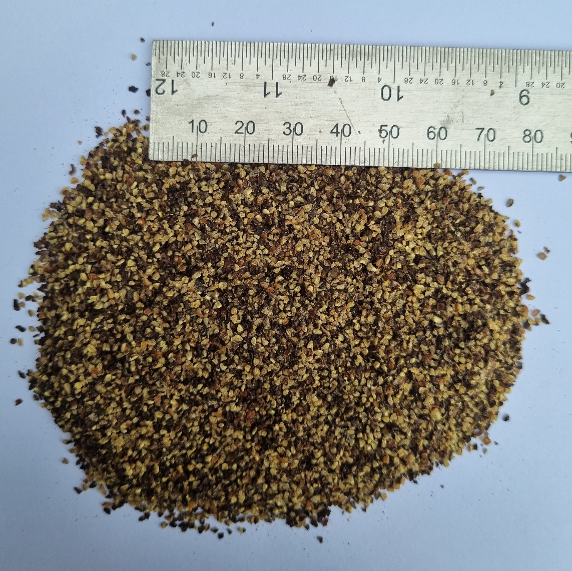Pimienta negra (Piper nigrum) granulada y recién molida de origen natural obtenido de la molienda y eliminación de polvo para obtener una apariencia de grano.